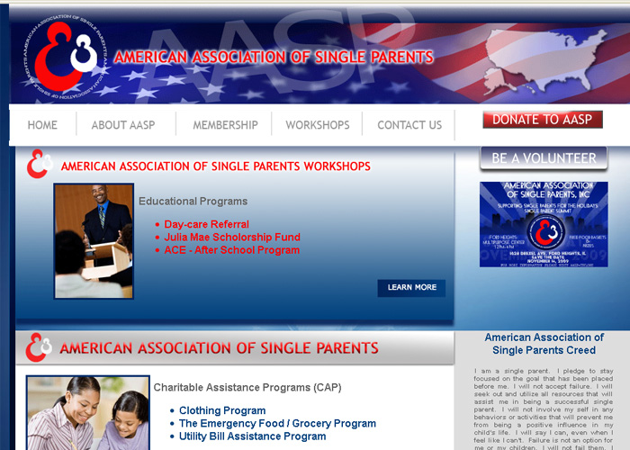 American Associal of Single Parents. Non-Profit Concept to help and inform single parents in need of assistance with programs.