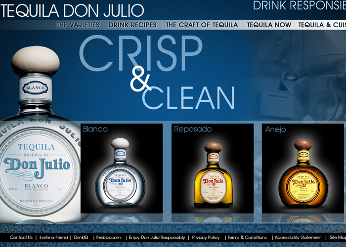 Tequila Don Julio. Visual varieties of Tequila, but focusing on Don Julio to increase sales. Microsite and tracking leads for distribution.